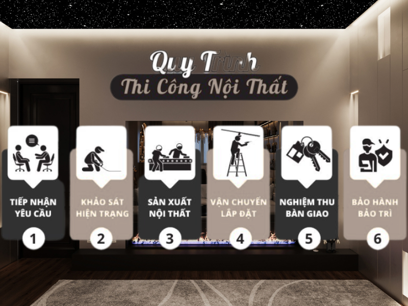 Để quý khách nắm rõ các bước thi công nhằm dễ dàng theo dõi và quản lý tiến độ công trình của mình, mời quý khách tham khảo quy trình thi công nội thất biệt thự chi tiết bên dưới:
