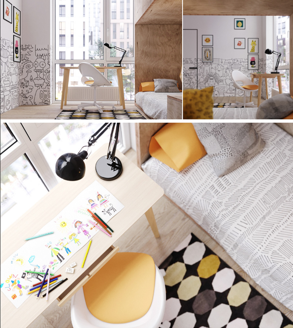 Với diện tích chỉ khoảng 42m2 với 1 phòng ngủ cùng các không gian sinh hoạt khác đáp ứng đầy đủ nhu cầu của một gia đình có con nhỏ. Đây là thiết kế mẫu nội thất chung cư dành cho vợ chồng trẻ “trong mơ”.