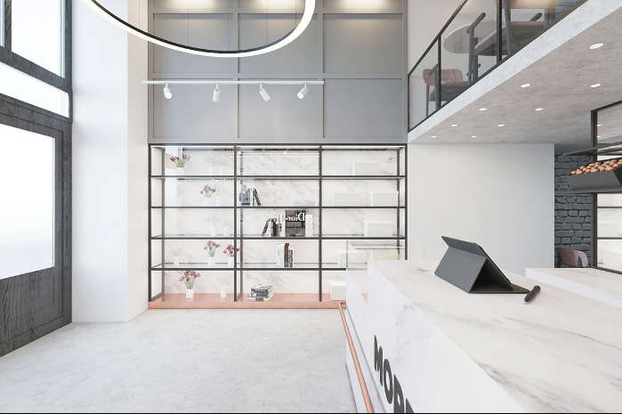 Thiết kế thông minh với hệ cửa kính lớn giúp cửa hàng tận dụng được tối đa ánh sáng tự nhiên, từ đó tạo nên không gian mở rộng và “ăn gian” được phần diện tích nhỏ khá hạn chế.