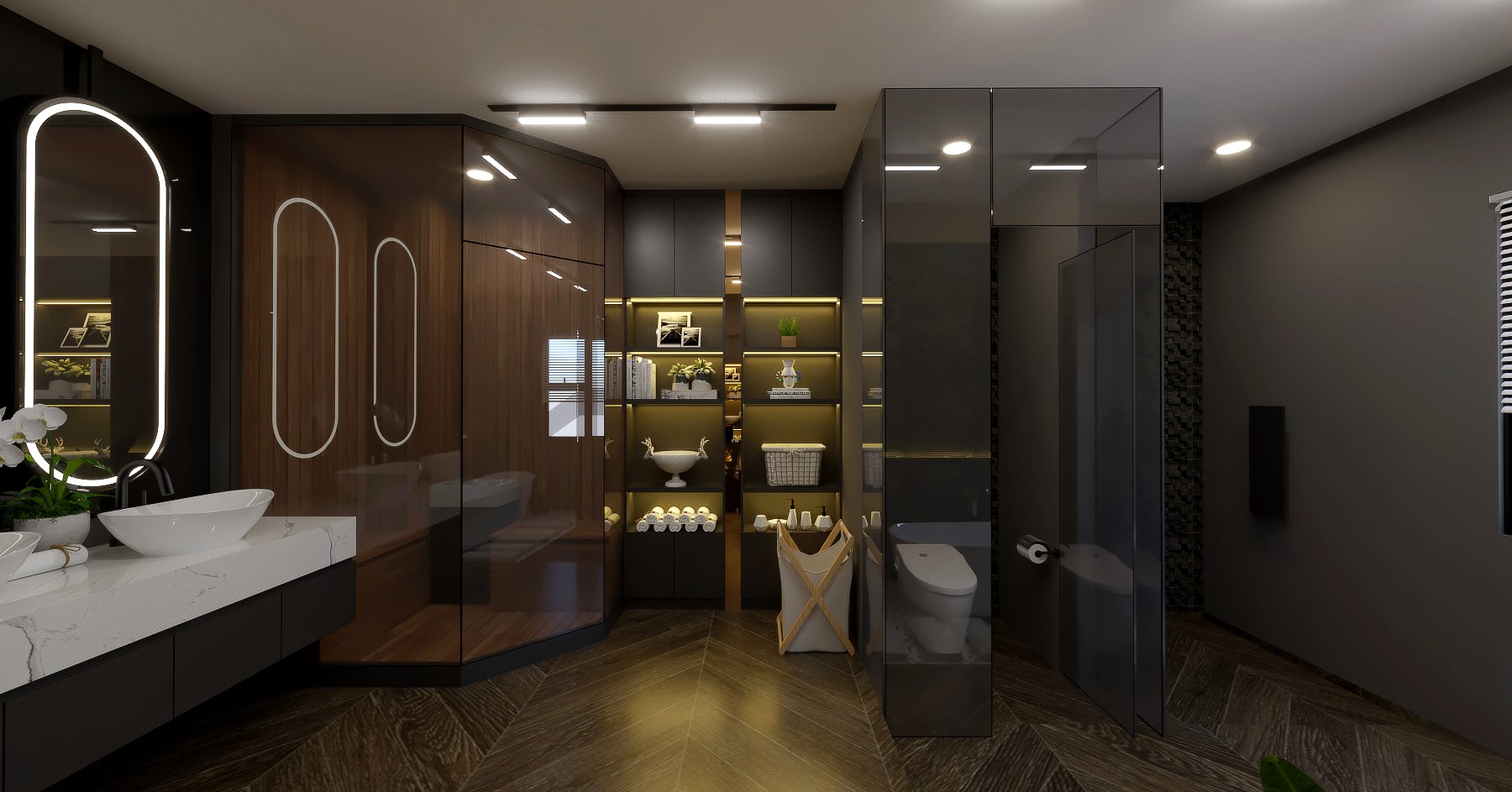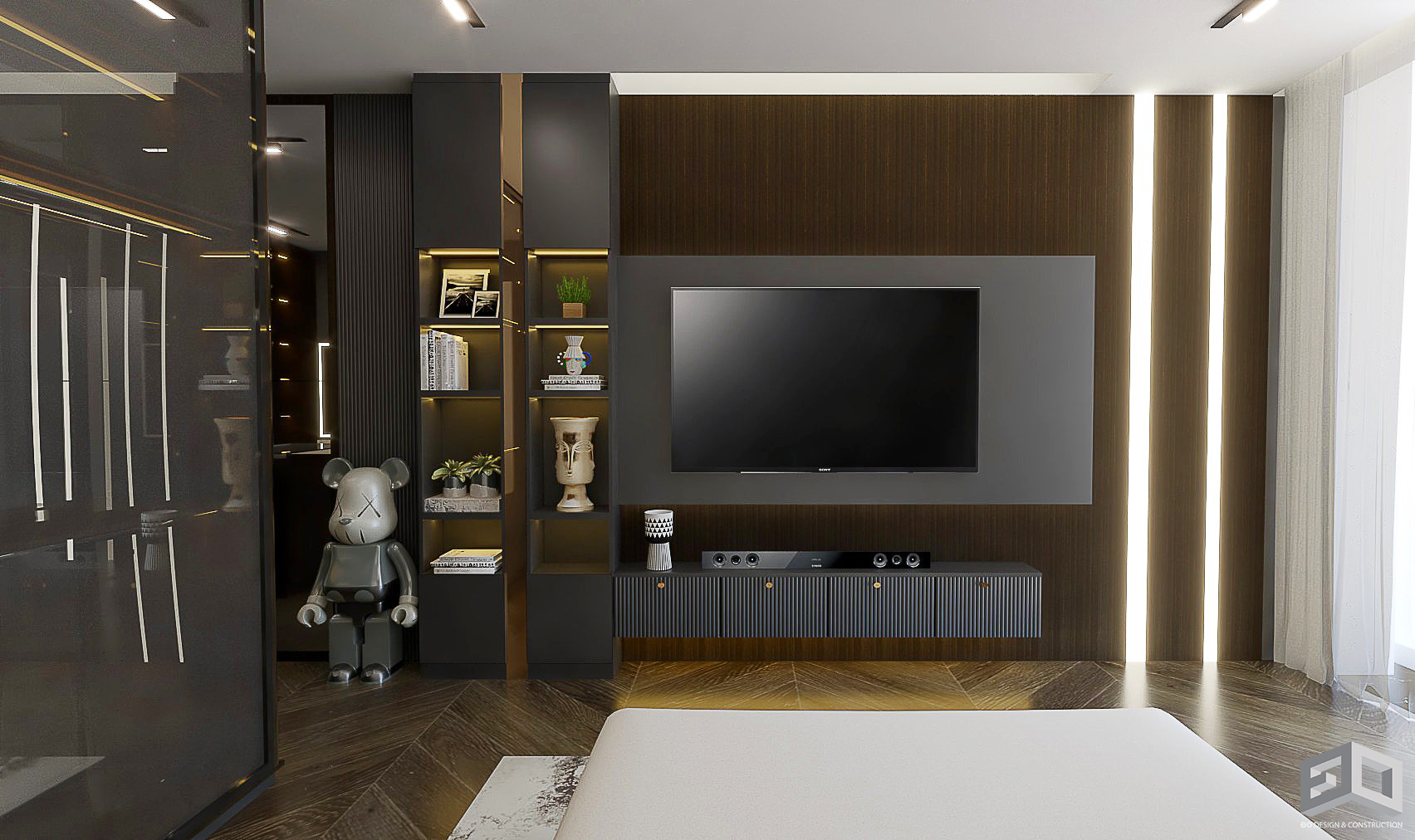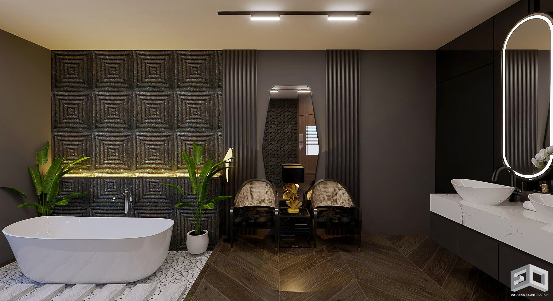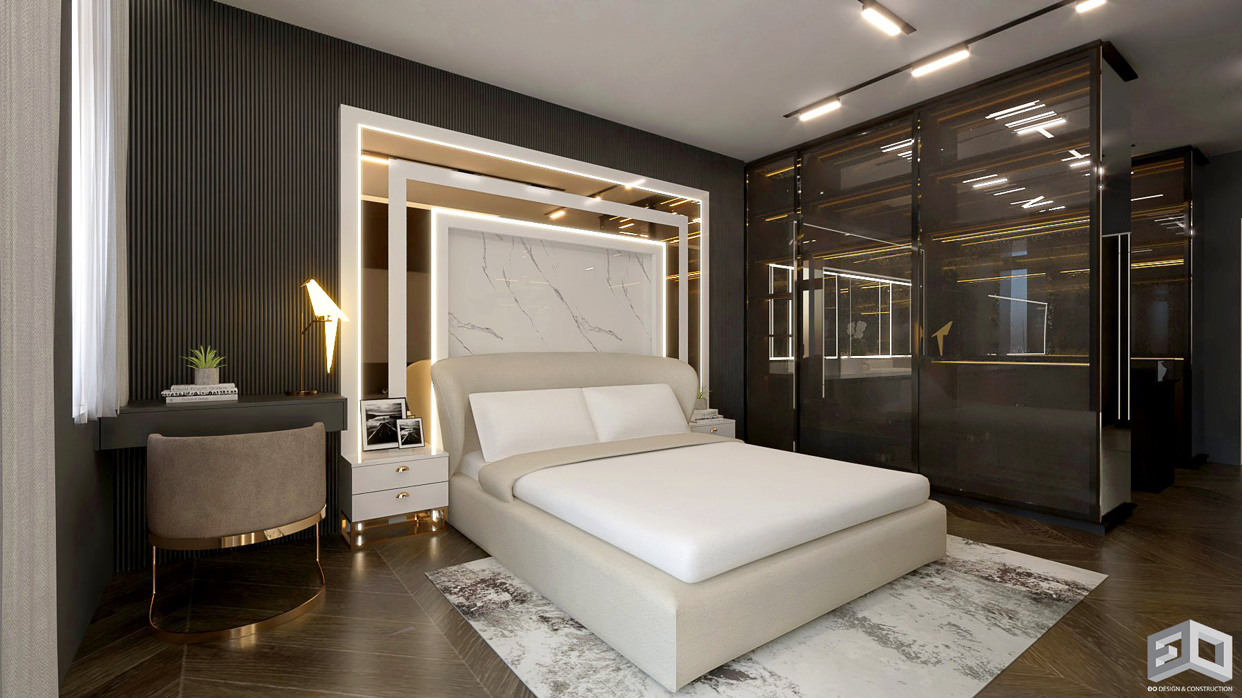 Được thiết kế với phong cách hiện đại sang trọng, các đồ nội thất phối hợp uyển chuyển, hợp thời, tông màu trắng, kem và xám kết hợp các ánh mạ vàng là tông màu của tương lai, tránh bị lỗi thời.