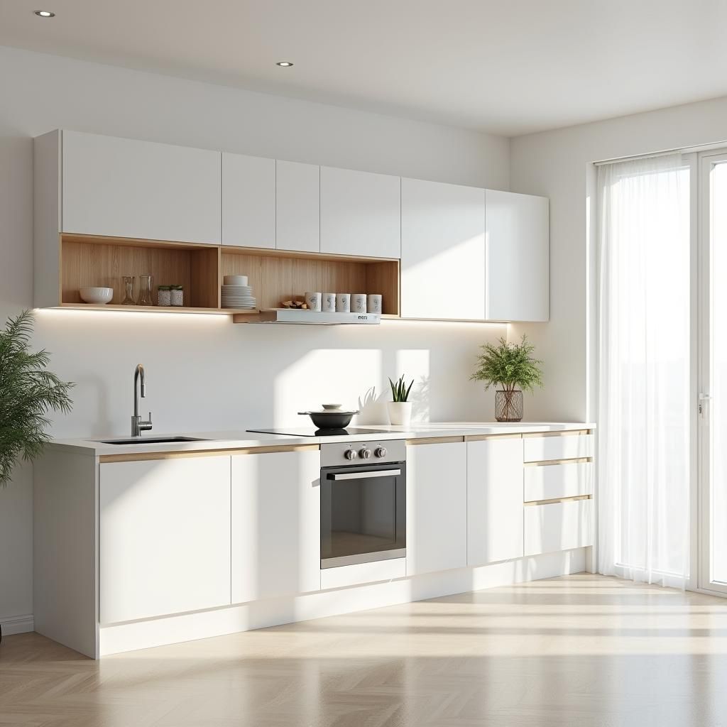 - Hiệu ứng bóng gương của Acrylic thích hợp với bếp nhỏ vì có thể tạo ra hiệu ứng sâu và rộng hơn cho không gian.